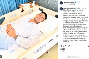 9月8日,申花官方消息,球队前锋安德烈-路易斯腰椎间盘微创切除术,预计将伤缺六周左右。今天,路易斯社媒晒照,他已经成功接受手术。