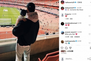 本场比赛因伤缺战的哈弗茨也抱着自己的孩子来到现场观战,球员在个人社媒晒照写道:“⚽️👶🏻就像这样的时刻!”