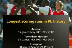 1、阿森纳 55场,01年5月-02年11月