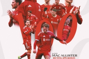 替补登场,麦卡利斯特迎利物浦生涯百场里程碑之战