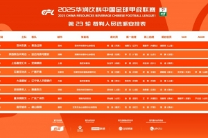 中甲23轮主裁判选派安排(详情如图):