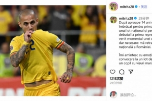 米特里策在社媒写道:“在首次穿上国家队球衣近14年、完成一线队首秀逾7年之后,我迎来了一个艰难却必要的决定:从罗马尼亚国家队退役。
