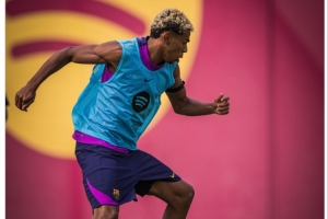 赛前,巴萨社媒晒出亚马尔的训练照,并配文写道:拉明就是魔法般的存在