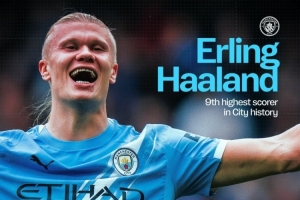 哈兰德为曼城打进133球,排名队史射手榜第9位,曼城官方社媒晒出队史射手榜,配文:“他势不可挡。”