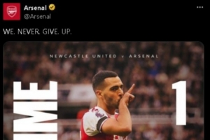 阿森纳社媒赛后激情发文:“我们永不放弃!”