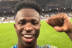 维尼修斯赛后录制视频寄语球迷:“嗨,皇马球迷们,为今晚的胜利和我的进球感到非常高兴!Hala Madrid!我们继续前进。”