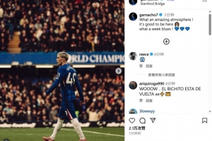体育资讯10月5日讯 加纳乔更新社媒,庆祝切尔西本轮击败利物浦。