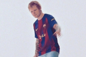巴萨官方发布英国知名歌手艾德-希兰的联名球衣,这是巴萨与赞助商Spotify合作项目的一部分。