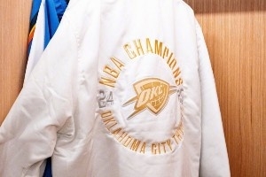 细节满满!雷霆晒出球队冠军限定版热身服 金色LOGO醒目