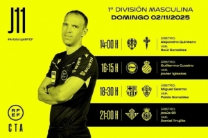 西甲第11轮部分场次裁判安排:
