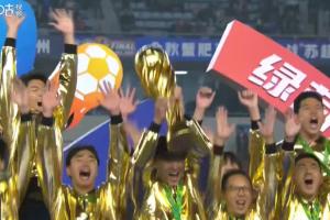 体育资讯11月01日讯 捧杯时刻!泰州队全队身着金色战袍,捧起首届苏超冠军奖杯!