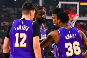 体育资讯11月4日讯 在今天结束的一场比赛中,湖人以123-115战胜开拓者。赛后,湖人官方晒出了赢球海报。
